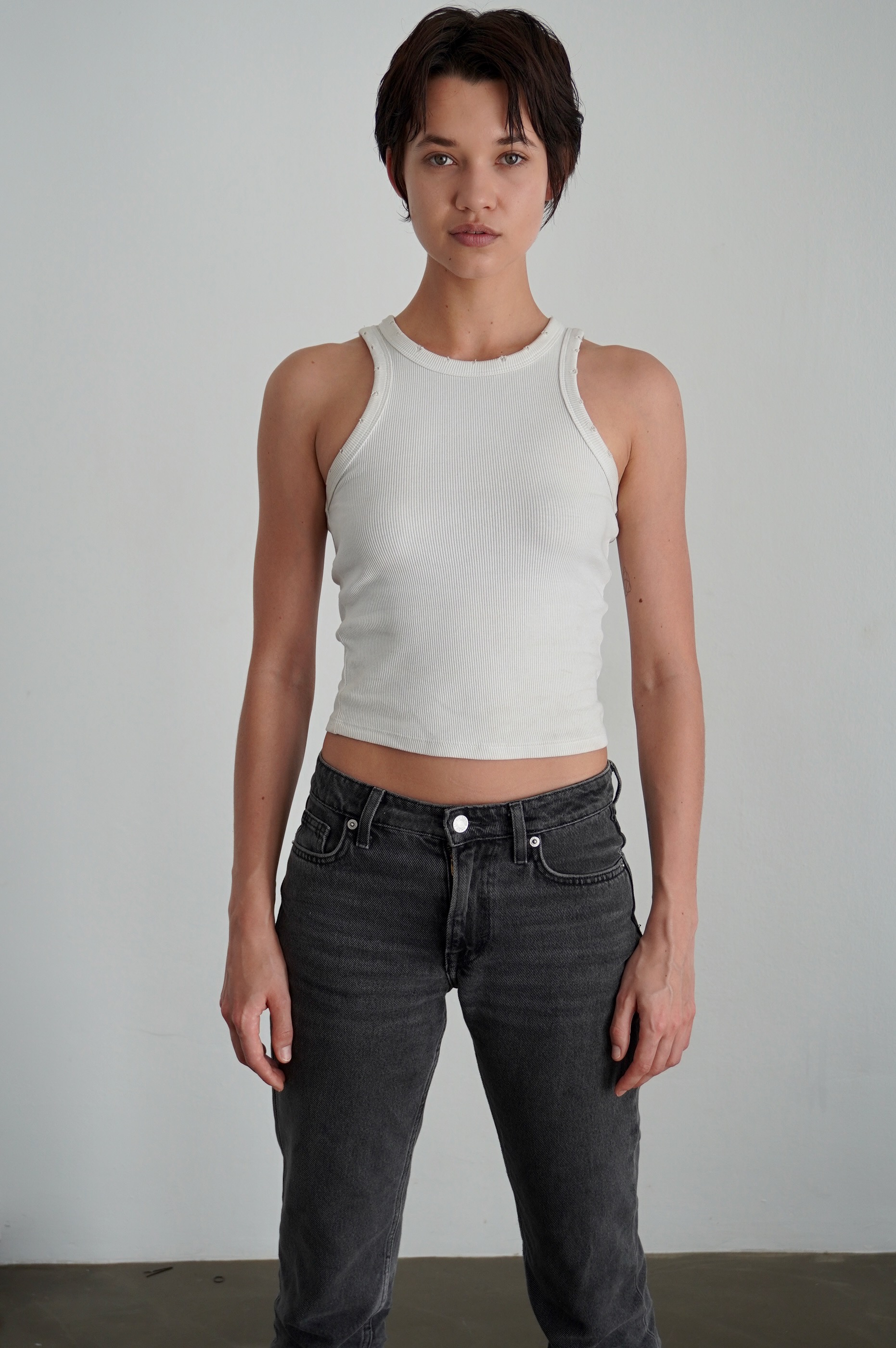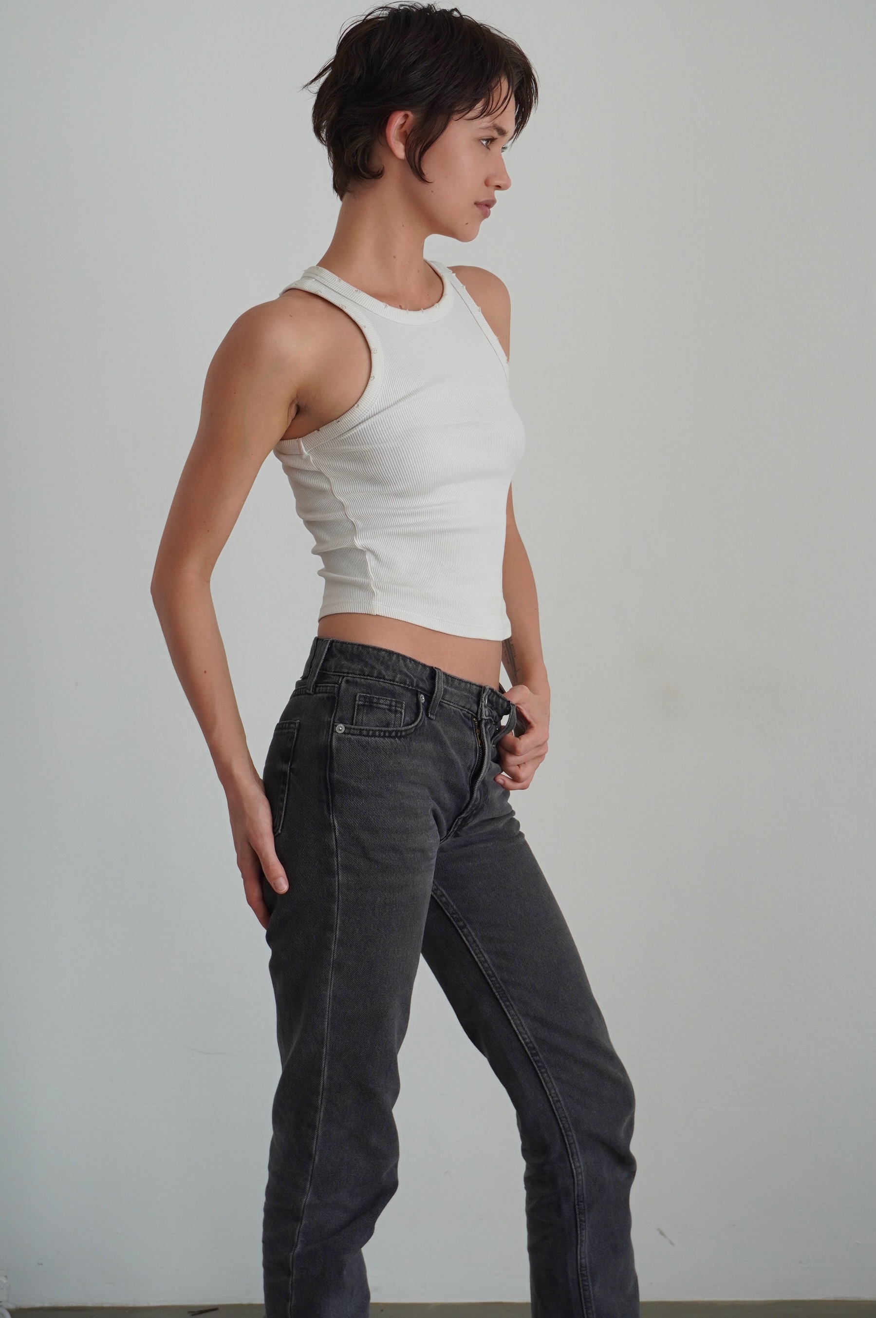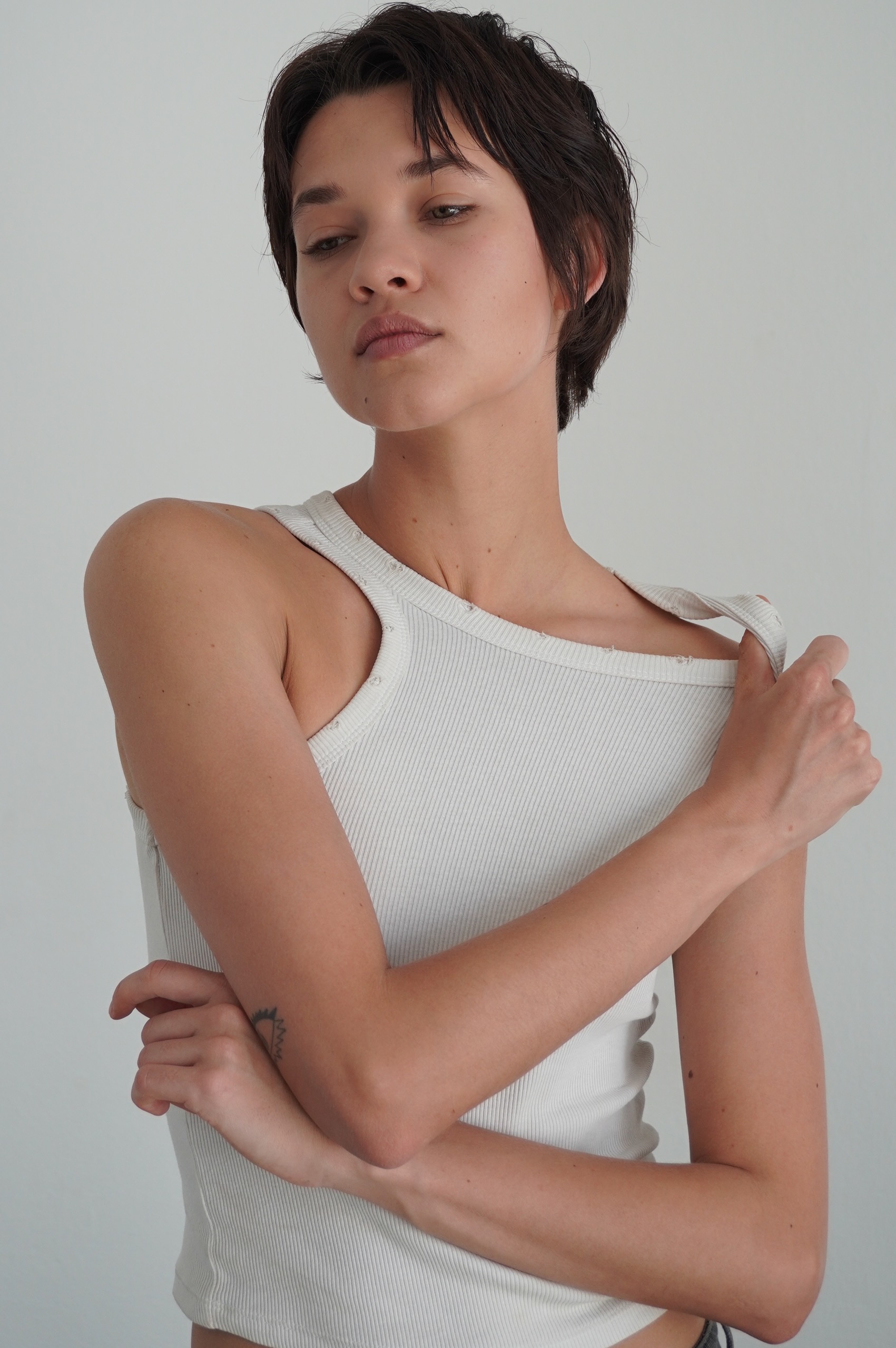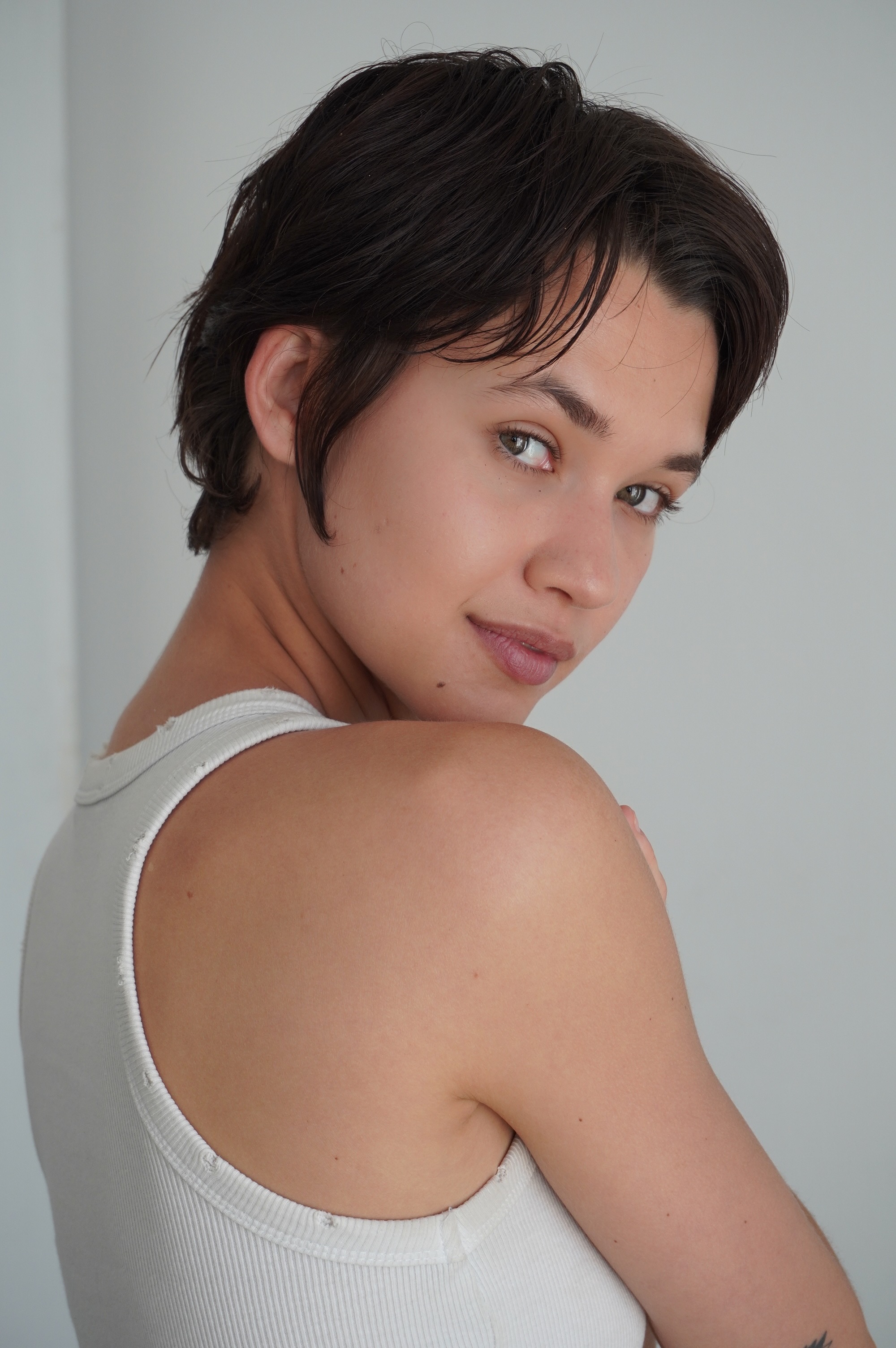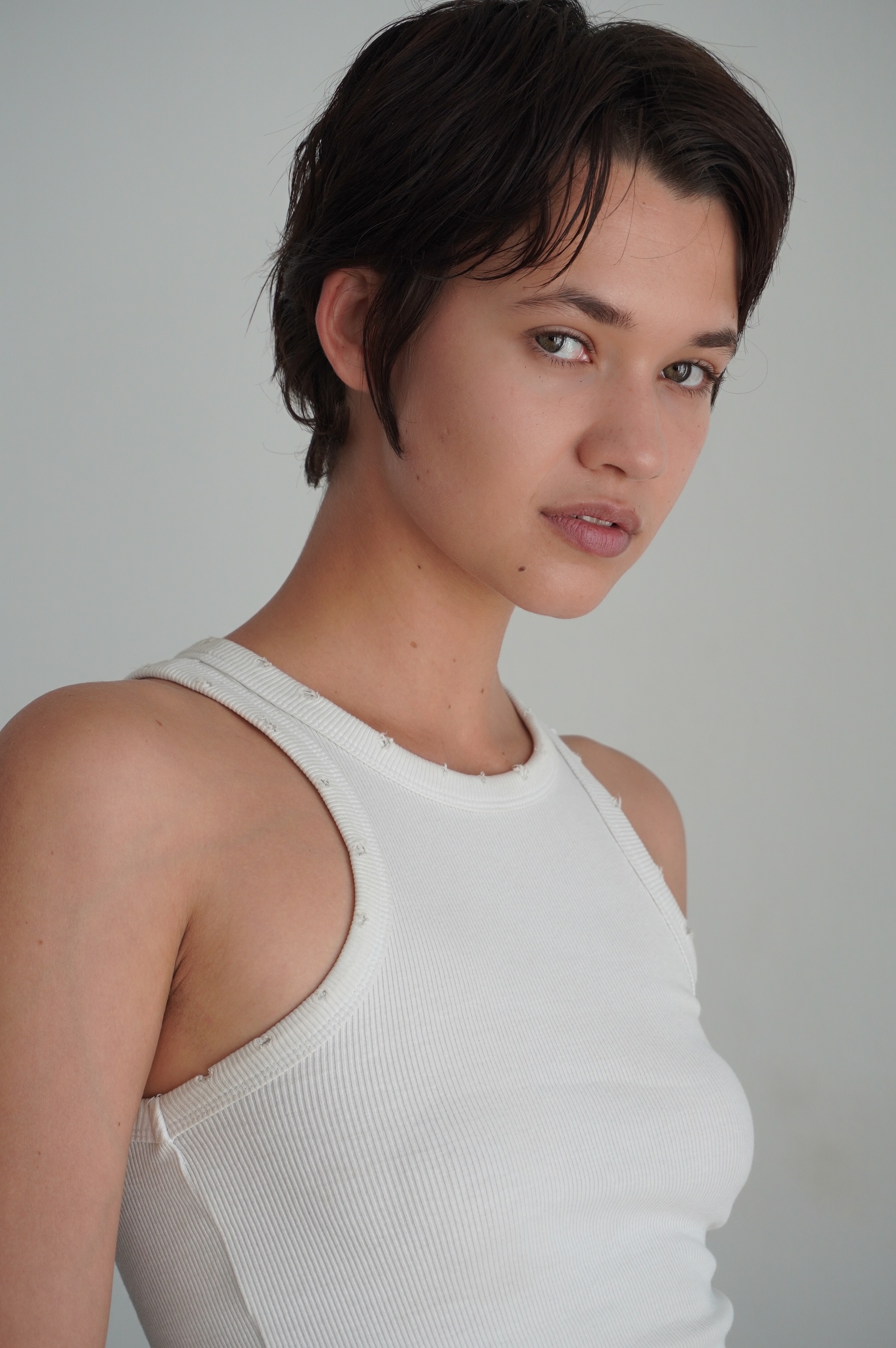 Hair: Dark brown